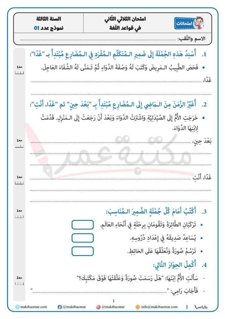 امتحانات عربية مع الإصلاح السنة الثالثة 3️⃣ الثلاثي الثاني