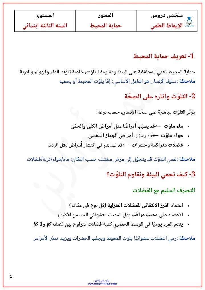 ملخص الإيقاظ العلمي السنة الثالثة 3️⃣ الثلاثي الثالث