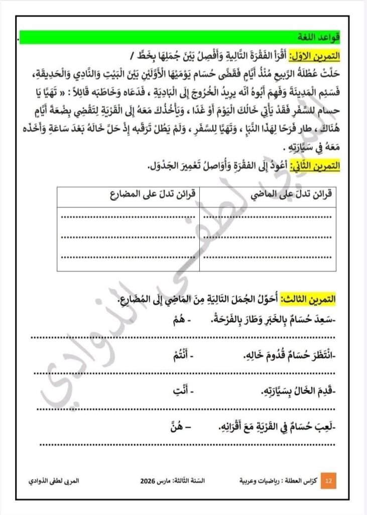 قواعد اللغة العربية سنة ثالثة الثلاثي الثالث