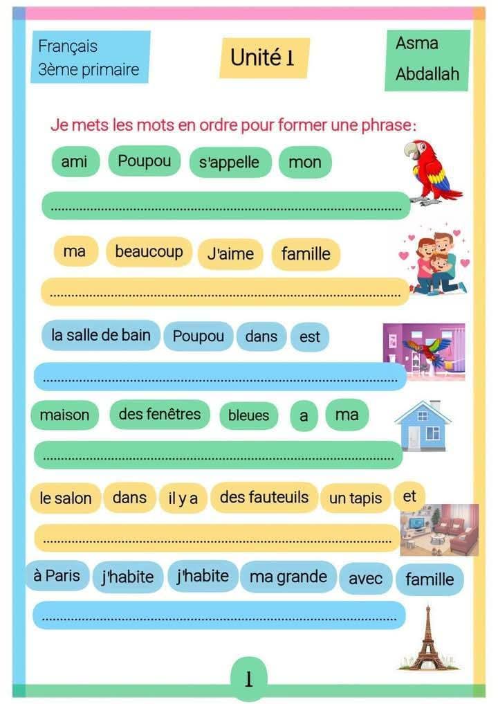 كل ما يستحقة تلميذ السنة الثالثة في مادة الفرنسية الوحدة الاولى